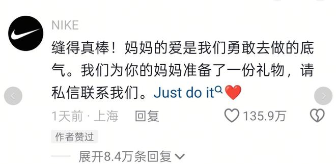 耐克公司注意到这个视频后,没有像某些品牌那样以“侵权”为由发出律师函,而是做出了一个温暖而充满敬意的回应。