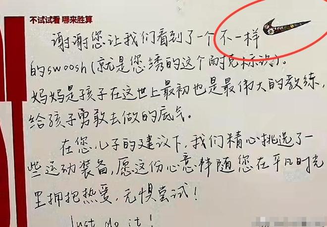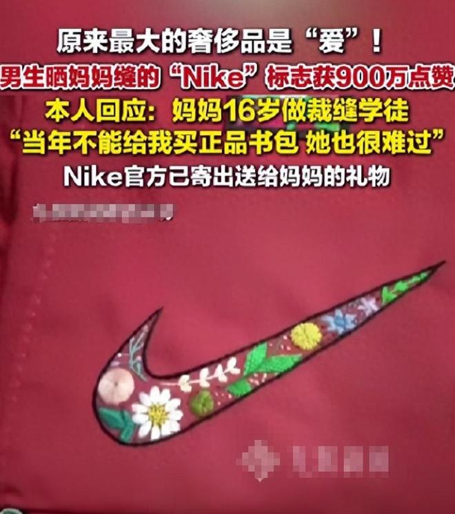 这条短短6秒的视频意外获赞千万,火爆全网。耐克官方不仅没有追究“侵权”,反而致以温柔回应,并为母子寄去专属定制礼盒,完美复刻了当年的手绣图案。