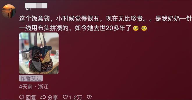 “女朋友给缝的,一直不舍得穿”、“这个个饭盒袋,小时候觉得丑,现在无比珍贵。是我奶奶一针一线……”